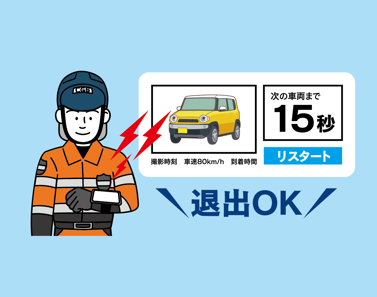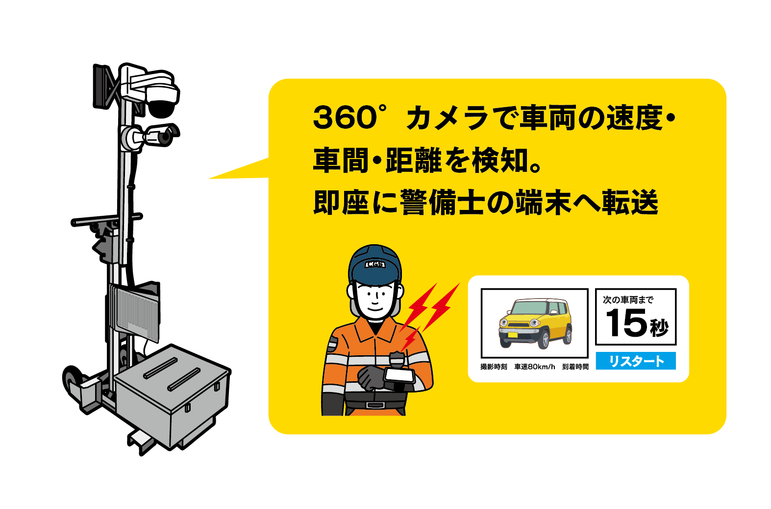 AIを活用したシステムにより「走行車両の画像」、「走行速度」、「前後の車両間の距離」が瞬時に端末に送信されるため、的確な判断ができます。